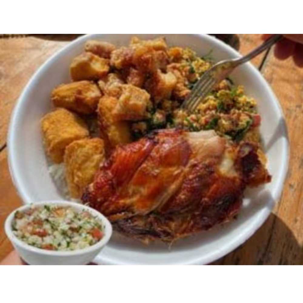 Feijão Tropeiro com Frango Marmita GNovidade da Casa, Delicioso Feijão Tropeiro com Churrasco de Frango Assado na Churrasqueira, Arroz Quentinho, Tropeiro Fresquinho rechegado de Calabresa, Torresmo Famosa Banana a Milanesa, Salada de Vinagrete pra Acompanhar.R$ 27,90
