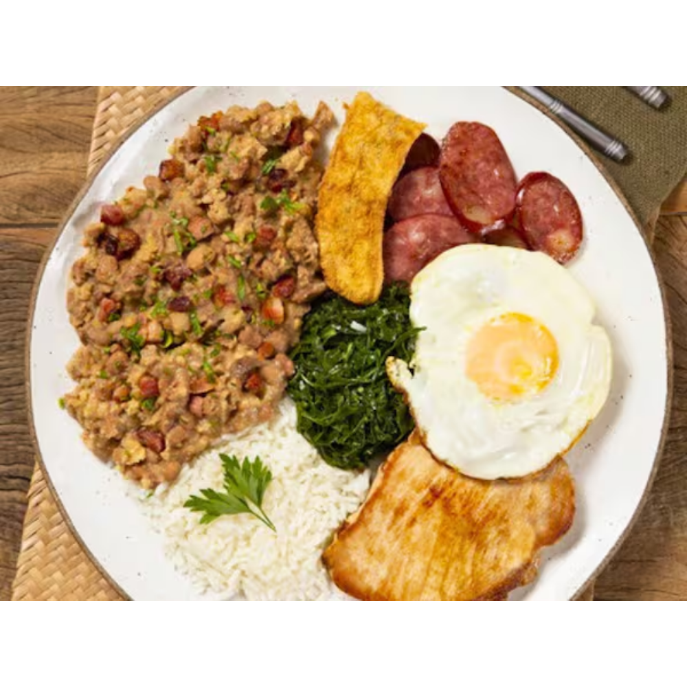 Virado PaulistaDeliciosa Marmita Saborosa Quentinha Acompanhamento: Arroz Branco Fresquinho, Tutu De Feijão, Couve, Torresmo, Pernil e Linguiça Assados Na Churrasqueira, Ovo Frito, Banana A Milanesa, Salada De Vinagrete.R$ 38,90