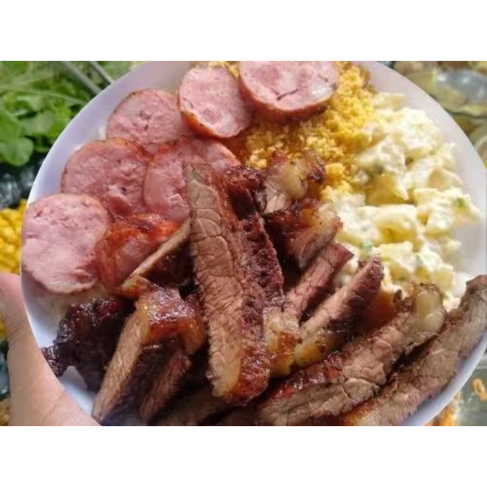 Churrasco Contra Filé, Linguiça, Salada de Maionese (Arroz, Feijão, Farofa)Churrasco Assado na Brasa Deliciosas Carnes Contra Filé Cortado Aperitivo, Linguiça Toscana, Arroz Branco Fresquinho, Farofa Caseira, Feijão Bem Temperado, Maionese Caseira Separada.R$ 40,90